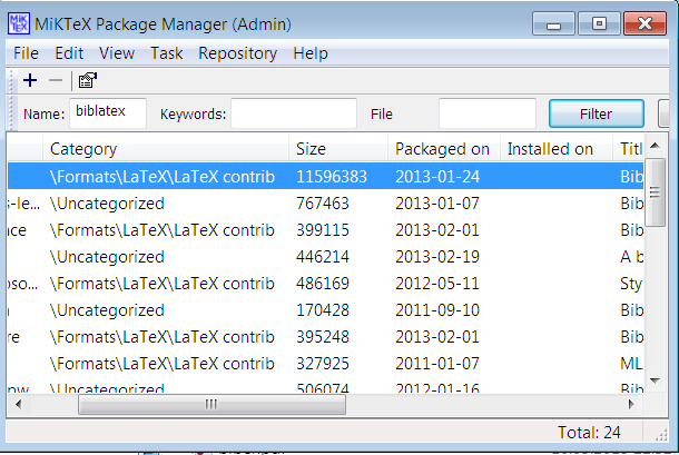 Ainsi, nous pouvons rechercher le package BibLaTeX.