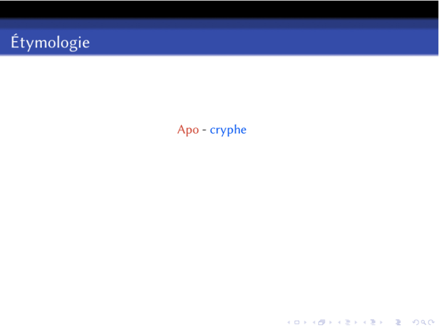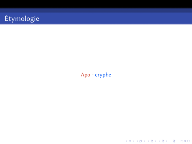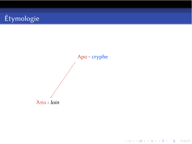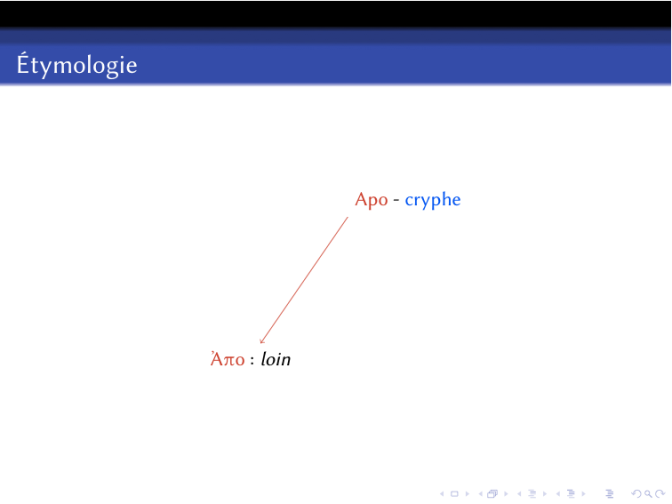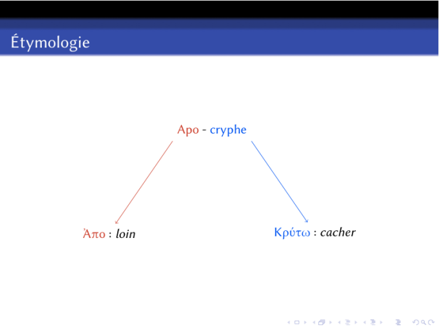 Il s’agit d’expliquer l’étymologie du mot apocryphe : de « Ἀπο », loin de, et « Κρύτω », cacher.