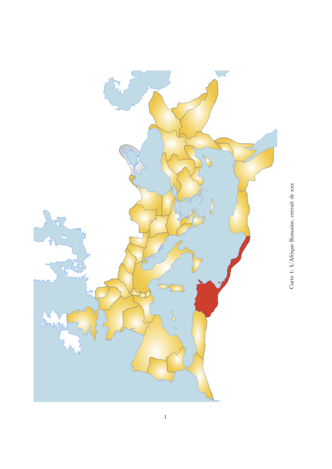 Dans mon mémoire, je souhaite intégrer une carte de l’Afrique Romaine. Je souhaiterais donc avoir un flottant « carte ». En outre, étant donné le format de la carte, il fallait que j’oriente mon flottant dans le sens de la hauteur de page, et non de la largeur, c’est à dire que ma légende soit basculée à la verticale.